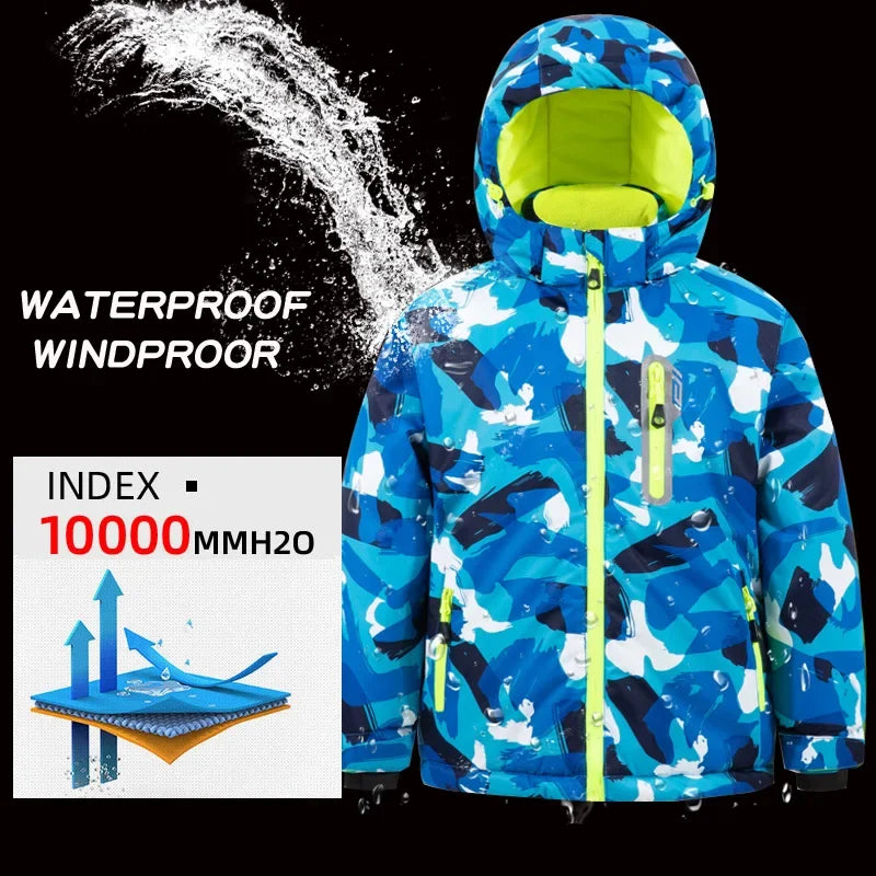 Casaco de esqui e calças para crianças, coupe-vent, imperméable, ensemble de snowboard, quente, trajes de neve, vêtements d'extérieur, meninos, meninas, hiver